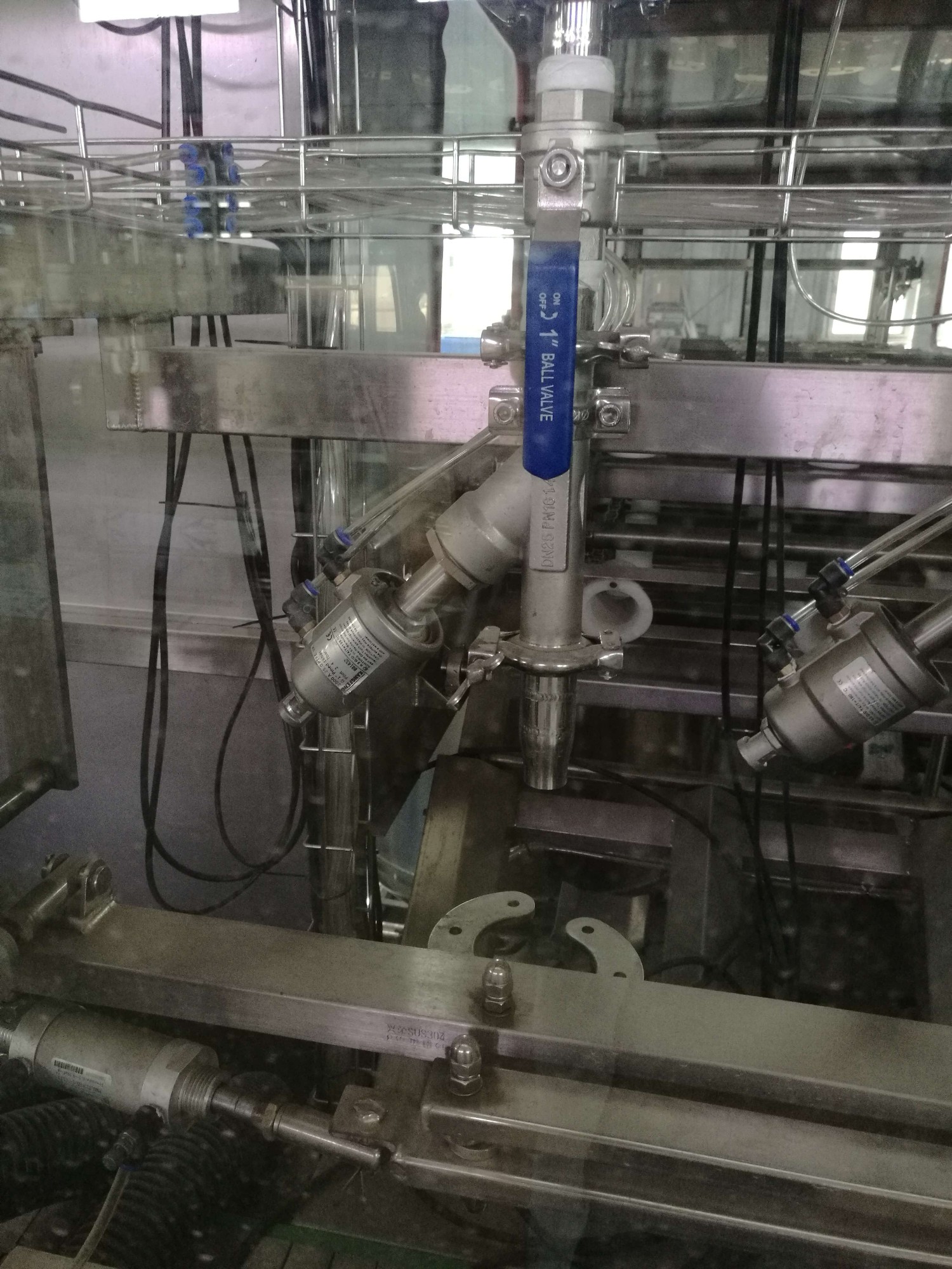 本自動灌裝機主要用于三/五加侖桶裝水的灌裝,灌裝方式采用新型常壓灌裝,采用變頻調(diào)速。無回流或溢流水產(chǎn)生。本自動灌裝機灌裝原理是:空桶在常壓灌裝時,灌裝頭氣阻部件處于常開狀態(tài),進行大流量液位灌裝,在接近可控液位(規(guī)定18。9L)桶內(nèi)的水壓與儲水桶的壓力相等時,灌裝頭氣阻部件處于常閉狀態(tài),從而保證液位的精準。本自動灌裝機灌裝無泄漏,無溢流水,為客戶節(jié)約了大量的水電氣資源。